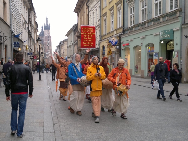 Die Eindrücke auf den ersten zwei Kilometern nach dem Start sollte man bewusst auf sich wirken lassen: Es geht quer durch die Innenstadt, an einigen der 100 Kirchen Krakaus und am Wawel (Burgberg) vorbei und dann zur Weichsel. Wem es nach dem Start zu hektisch ist, um alles zu genießen, der kann das dann  40 Kilometer später noch mal probieren. Auf der folgenden breiten Aleja Zygmunta Krasińskiego zeigt sich, dass es in Krakau für Restauratoren noch einiges zu tun gibt: Dunkle Häuser wechseln sich mit frisch renovierten Schmuckstücken ab. Zwei Polen stehen in ihrer historischen Tracht am Straßenrand und beobachten uns. Vielleicht sind sie auf dem Weg zum Rynek, um sich mit Touristen fotografieren zu lassen.