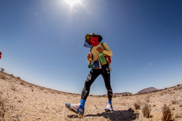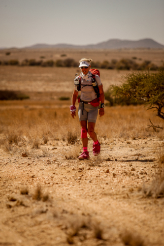 Die Aufgabenstellung: 250 km in 5 Etappen zu 43/57/37/100 und 15 km. Wir laufen in Selbstversorgung mit Rucksack, in dem sich Schlafsack, Essen und Sicherheitsausrüstung für eine Woche befinden. Das Gewicht variiert zwischen 5,8 kg bis 11kg. Jeweils nach 10 km passieren wir einen Checkpoint an dem wir bis zu 2,5 Liter Wasser erhalten. Das Camp, das wir morgens verlassen haben, ist bei unserer Ankunft nach dem Lauf bereits wieder an einem anderen Ort aufgebaut.