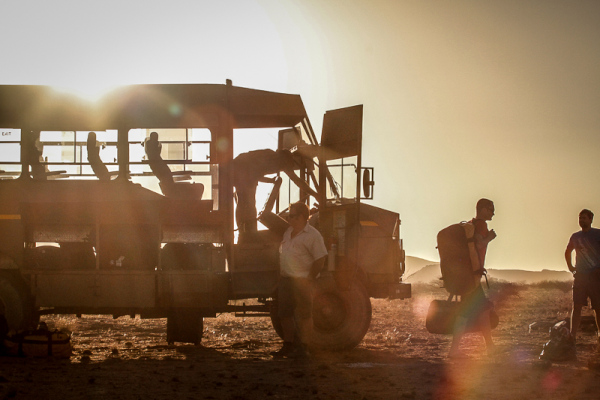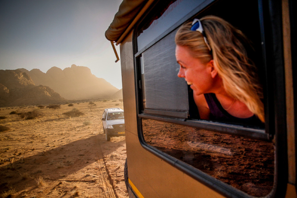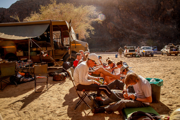 Als ich Ende November in Windhoek ankomme, treffe ich am Meetingpoint zuerst Raoul aus Stuttgart. Er ist ca. 35 Jahre alt, grünbraun, 4-radgetrieben und hat Platz für 20 Menschen – und ist natürlich von Mercedes. Er wird das Herzstück unseres Basiscamps für die nächsten 7 Tage. Er sorgt für Wasser, Schatten, die Unterbringung der Zelte und Transporte der Crew.