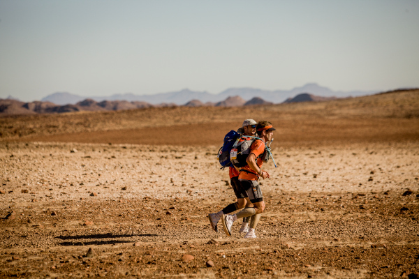 Beyond the Ultimate heißt der Veranstalter aus England – unter seinem Logo der Slogan „Nothing tougher“. Das wird sich im Laufe dieses Rennens bewahrheiten, da die Hälfte der Teilnehmer aus USA, Korea, Europa, Angola oder Kanada das Ziel nicht erreichen werden. Alle, die sich an die Premiere zu diesem 250 km Lauf in 5 Etappen in Namibia wagen, sind wie immer schnell auf einer Wellenlänge – Irrsinn verbindet. Was uns auch eint, ist die große Neugierde und die Bereitschaft zum Risiko. Wir sind die ersten, die diese Region läuferisch erkunden werden. Für den Veranstalter aber auch eine Herausforderung, da die Logistik noch nicht so eingespielt ist. Das wird sich noch zeigen.