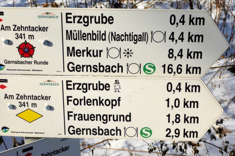 Der Wanderweg Gernsbacher Runde im Murgtal wurde mit dem Deutschen Wandersiegel als Premiumweg ausgezeichnet. Er hat mit 42,7 km fast genau Marathon-Distanz. Doch man kann diese Runde nicht mit einem normalen Marathon vergleichen. Viele anstrengende Auf- und Abstiege warten auf uns. Vor einigen Jahren stapften wir auf der gesamten Strecke durch Schnee, letztes Mal war sie komplett schneefrei, 2017 sorgt nun eine ausgewogene Mischung für Abwechslung. Normale Wanderer teilen sich die Strecke in zwei oder drei Tagesetappen ein, was aufgrund der guten Busverbindungen gut klappt.