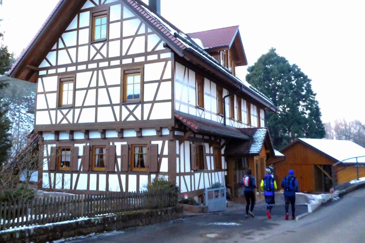 Leider kommen nur recht wenige Läufer noch zum abschließendem Abendessen ins Saunahaus nach Lautenbach. Vielleicht denken einige, dass man dort auf jeden Fall auch in die Sauna muss. Doch Sauna ist nur eine Option, die von uns Läufern meist nicht genutzt wird. Wir beschränken uns hier auf die Dusche und sitzen dann noch lange bei gutem, äußerst preiswertem Abendessen vor dem Kaminfeuer. Dies ist der ideale Abschluss eines grenzenlos schönen Lauftages.