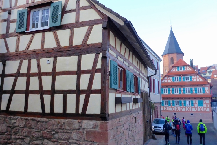 Vom kleinen Ort Reichenbach aus steigen wir dann steil auf sonnigen Wegen bergauf. Bei vielen netten Gesprächen mit Lauffreunden merken wir kaum, wie wir auf dem zwischen Felsblöcken hinauf führenden Pfad an Höhe gewinnen.