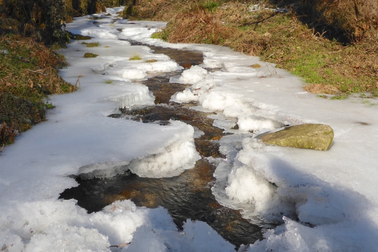 Der idyllische Weg durch das Reichenbachtal wird heute durch herrliche Eisgebilde auf dem plätschernden Bach geschmückt. Auch hier stehen viele der schönen Heuhütten. Diese Strecke wird auch als Kunstweg bezeichnet, aber die zahlreichen ausgestellten Kunstwerke kann man nicht gerade als kreative Höhepunkte bezeichnen.
