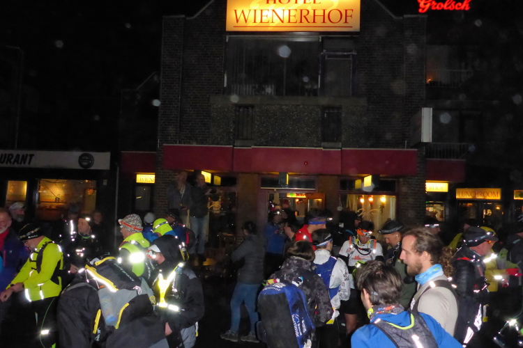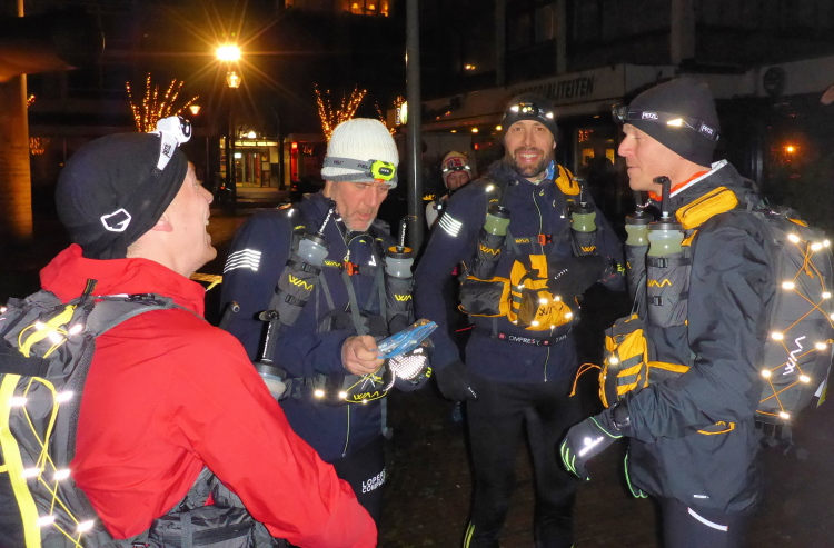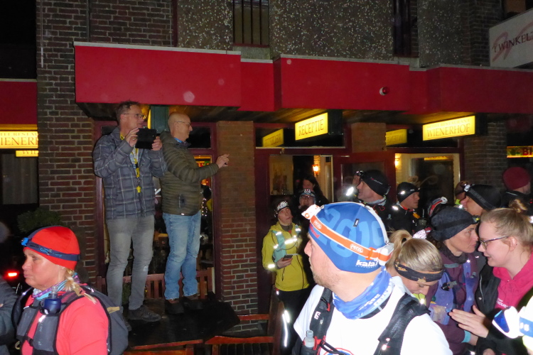 Henri und Rinus organisieren diese Veranstaltung, die vor 10 Jahren ganz privat mit 23 Läufern anfing. Heute starten wohl 115 und immer noch ganz privat. Henri und Rinus erkennen mich sofort, „Ausländer“ sind selten im Winter, obwohl der Lauf im DUV-Kalender gelistet ist. Kurze Einweisung  auf Englisch. Nein, einen Besenwagen gibt es nicht: „Der Luxus ist in deinem Rucksack!“