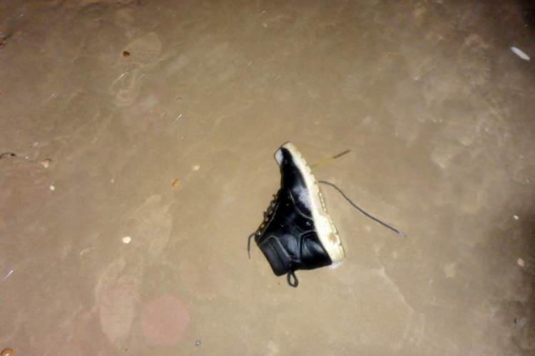 Blickpunkte bieten die hellen Schulpe, die Kalkskelette der Sepien, eine abgerissene Boje, Netze oder ein einsamer Schuh. Andere Läufer finden einen Seehund am Strand, ich finde nicht mal Spuren meiner Vorläufer. Blöd die Meldung auf FB letzte Woche: „ Strand weggeslagen“. Tatsächlich hat der letzte Sturm unsere geplante Laufstrecke stark verengt.