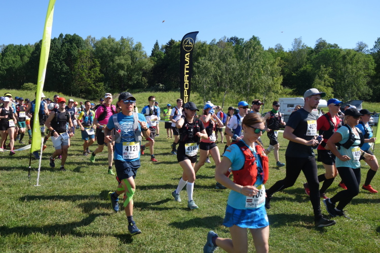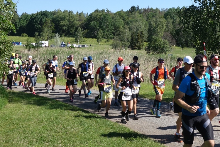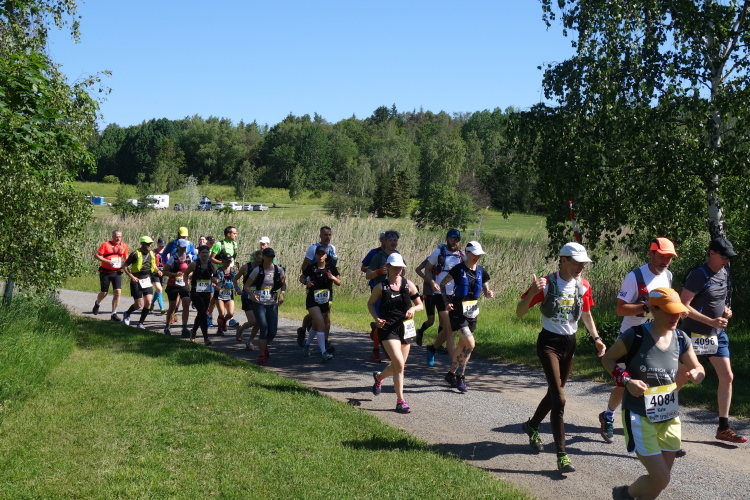 Hatten wir in den Tagen vor dem Lauf auch etwas Regen, so ist es heute ein Bilderbuchtag. Schon um 8 Uhr hat es 17 Grad und die Sonne lacht schon seit vier Uhr vom Himmel. Der Lauf verspricht eine Hitzeschlacht zu werden. Vor dem Start wird Aufwärmgymnastik angeboten. Ich verzichte und bleibe bis zum Briefing im Schatten. Sonne werde ich nachher noch genug bekommen.