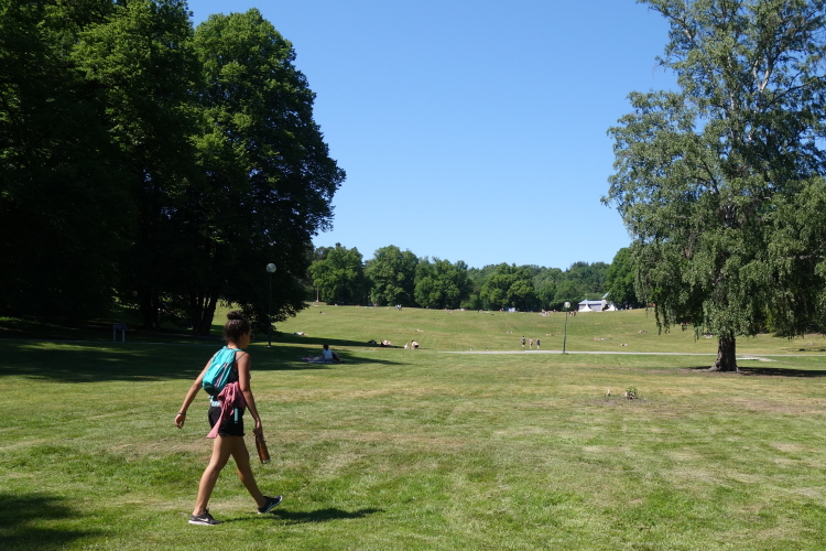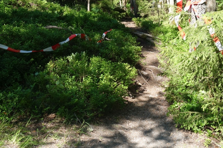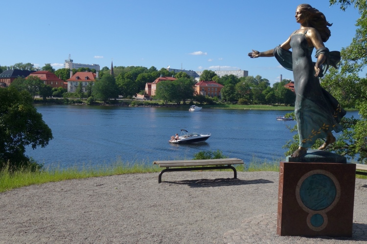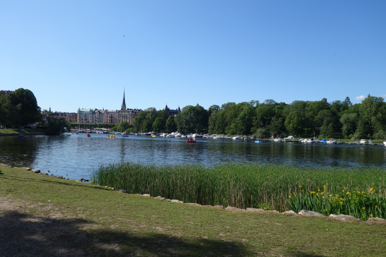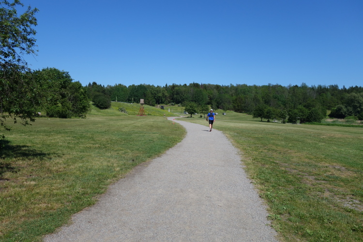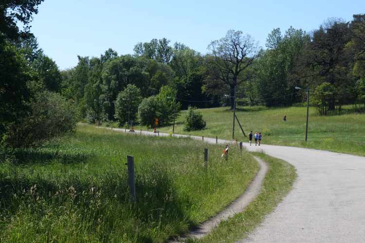 Wir kommen in den weitläufigen Hagapark, in dem man sich neben einigen Schlössern auch der Königliche Friedhof Haga befindet, auf dem zahlreiche Mitglieder der Königsfamilie bestattet sind. So auch der 1973 verstorbene König Gustav VI. Adolf. Und schon geht es wieder abseits der weiten Parkflächen hinein in den Wald. Hier ist es um einiges kühler und ich atme etwas auf. Es ist sehr schön im Park, aber die Passagen über die weiten Grasflächen lassen uns in der Sonne schmoren.