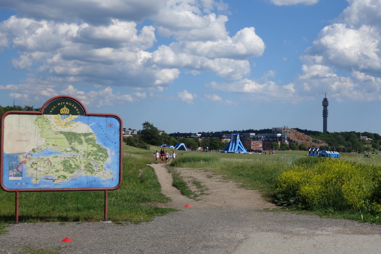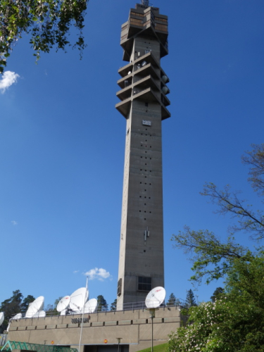 Jetzt bin ich gestärkt und passiere Km 35. Wir laufen zum weithin sichtbaren Fernsehturm. Der Kanästornet ist zwar nicht sehr schön. Man kann auch deutlich sagen, der Betonbau ist hässlich, aber die Aussicht aus 155m Höhe ist gewaltig. Erbaut wurde der Turm im Zuge des Stadionbaus für die Olympischen Sommerspiele 1912.