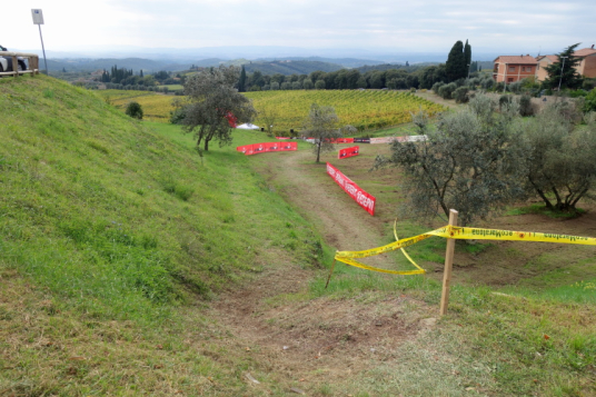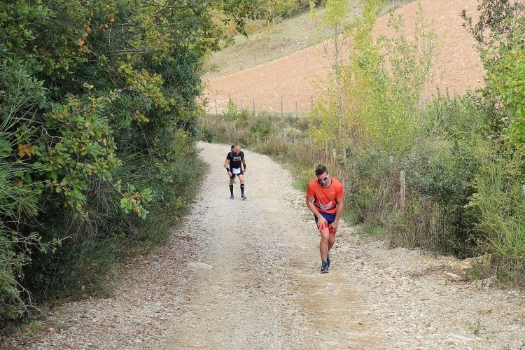 Auf einmal sehe ich Lorenzo vor mir. Ihn kenne ich von der Startnummernausgabe. Wir klatschen uns ab und ich ziehe weiter aufwärts. Den Aufstieg will ich hinter mir haben und den Abstieg nach San Gusmé in Angriff nehmen. Es gilt aber noch nach einer kurzen Verschnaufpause eine zweite Steigung zu bewältigen. Aber das Ende des Aufstiegs kommt und ich darf auf teilweise schmalen, ausgewaschenen und steinigen Pfaden abwärts.