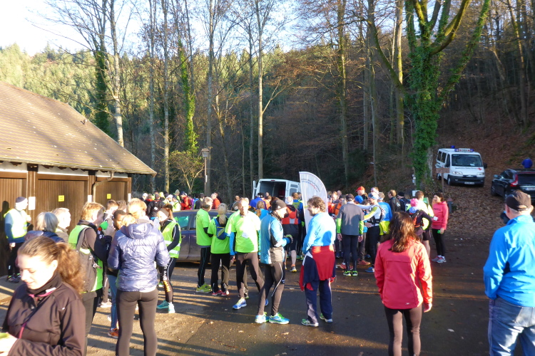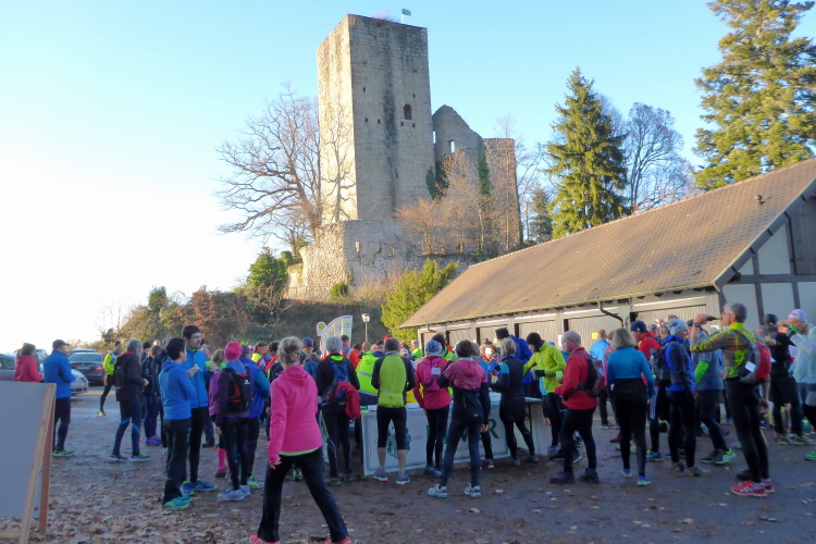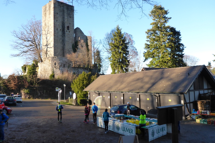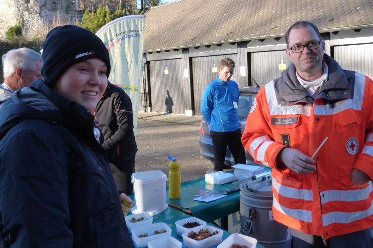 Wir suchen uns einen netten Platz in der Sonne und genießen die tolle Aussicht. Mit dem Eintreffen der Läufer wird es hektisch. Es wird über die Verpflegung hergefallen, als gäbe es nicht genug. Laura und ich halten uns zurück und begrüßen Norbert, der sich mit einer heißen Bockwurst und Glühwein stärkt. Viele Bekannte sind dabei, der Lauf scheint wohl immer mehr Wiederholungstäter anzuziehen.