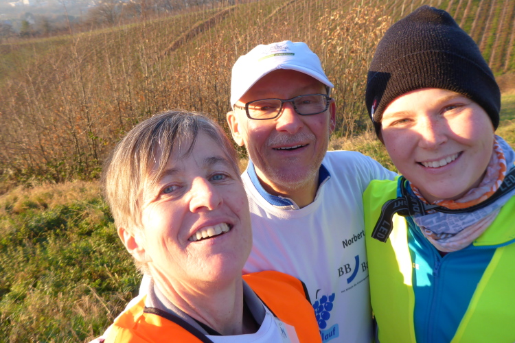 In den letzten Tagen ist es kalt geworden. Schnell neigt sich das Jahr dem Ende zu, Weihnachten steht vor der Tür. Schon seit Wochen freut sich Norbert auf den Eisweinlauf, einem Gruppenlauf von Offenburg zum Weihnachtmarkt nach Baden-Baden. Beim Thema Weihnachtsmarkt ist auch Laura, unsere Tochter, gleich dabei. Weil die Gesamtstrecke von 63 km für sie nicht in Frage kommt, beschließen Laura und ich, uns der Gruppe für die beiden letzten Etappen, mit guten 20 Kilometern, anzuschließen. Norbert läuft die ganze Strecke.