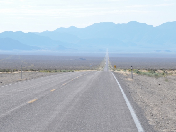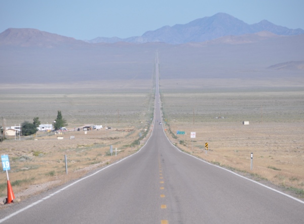 Nachdem wir den Einflussbereich von Las Vegas verlassen hatten, in der Zwischenzeit war es dunkel geworden, waren wir recht einsam auf dem Highway #93 unterwegs, etwa 110 Meilen (177 km) auf nahezu kerzengerader Straße durch die Wüste nach Norden. Immer wieder schimmerte der Vollmond durch die Wolken und tauchte die Wüstenlandschaft rechts und links der Straße in ein beinahe geheimnisvolles Licht. Nur ganz selten kam uns ein Auto entgegen, einmal wurden wir überholt. Eine Tankstelle mit ein paar wenigen Häusern tauchte auf und lag auch gleich wieder hinter uns. Eine Straße, die beinahe ins Nichts führte - in der Tat konnte man sich sehr gut vorstellen, dass ein phantasievoller Geist hier allerlei Legenden gebären konnte.