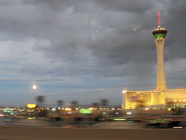 Am Samstagnachmittag holten wir unsere Startunterlagen in der Festival Hall des Hard Rock Hotels in Las Vegas ab und machten uns dann gegen 19.30 Uhr auf die Fahrt zum Start. Ganz ungewohnt für Las Vegas war es bewölkt und wir hatten „moderate“ 35 Grad.