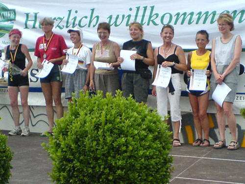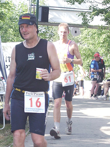 Neben vielen Unterhaltungen auf der Strecke mit mir schon bekannten Läufern, netten Mädels mit Zöpfchen und scheinbar immer guter Laune, dem mit 82 Jahren ältesten Teilnehmer, Horst Feiler, mit „Rauschebart“ Günter Menzel, Martina Hausmann, Anke Drescher, Heike Pawzik, Dietmar Mücke, dem äußerst sympathischen Deutschlandlauf-Sieger Reiner Koch, einer Gruppe von Walkern, die sich 120 km zum Ziel gesetzt hatten und mit den netten Staffelläuferinnen, mit denen man doch ab und zu ein paar Meter mithalten konnte, gab es noch endlos viele nette Unterhaltungen, die mir zu einem, wenn auch kleinen Einblick in die 24-h-Laufszene verholfen haben. Es war sehr eindrucksvoll, sich mit diesen "Lauf-Verrückten" zu unterhalten, zu denen ich nun auch gehöre.