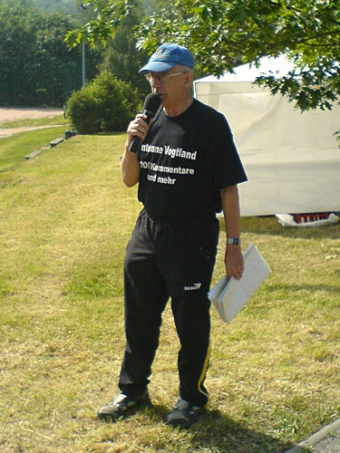 Der Sprecher selbst wird vor dem Start geehrt: Seine 1000 Moderation einer Sportveranstaltung – alle Achtung!