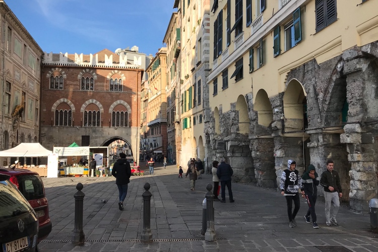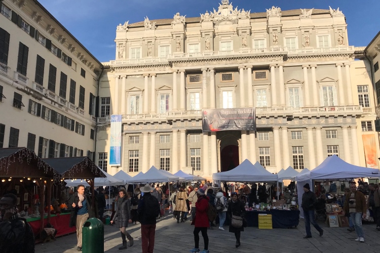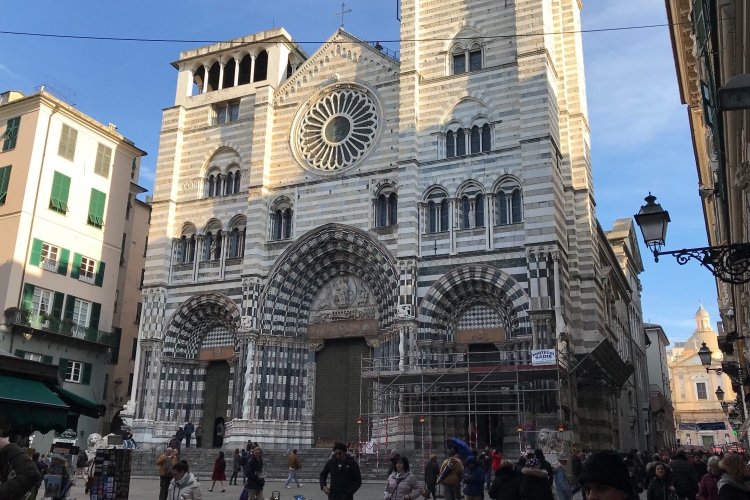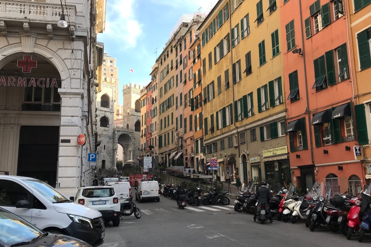 Ein erschwingliches Flugticket bringt uns in die ligurische Hauptstadt, die vor wenigen Monaten durch den Einsturz des Polcevera-Viadukts, auch Morandi-Brücke genannt, in die Schlagzeilen geriet. Die Rollbahn liegt quasi im Meer am Hafen. Per kostenlosem Bus fahren wir die wenigen Kilometer ins Zentrum. Ich bin hin- und hergerissen: Viele Häuser sehen ziemlich heruntergekommen aus. Dazwischen sieht man italienische Paare flanieren, teilweise tragen die Damen Pelzmäntel. Die U-Bahnstationen wirken sehr ungepflegt. Wenn sich nicht die Einheimischen so ungezwungen bewegen würden, wäre mir an vielen Stellen etwas mulmig zumute. Andererseits gibt es auch eine große Anzahl herrschaftlich wirkender Palazzi.