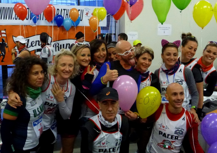 Giuseppina, die Pacerin für 3:30 - sie wird Erste in der AK35 - kommt uns entgegen und hat sogar noch Zeit, ihr Team zu fotografieren. Da fühle ich mich plötzlich ganz schön alt.