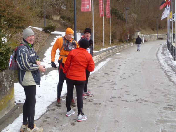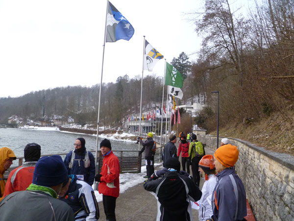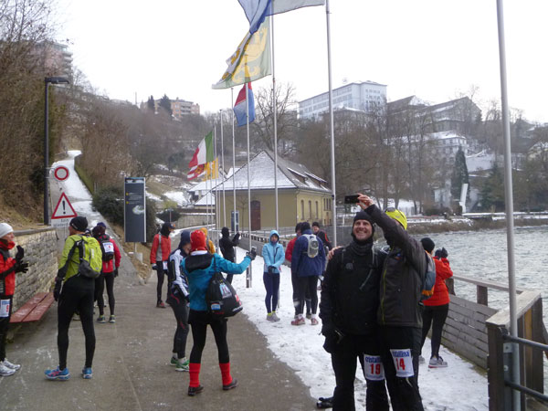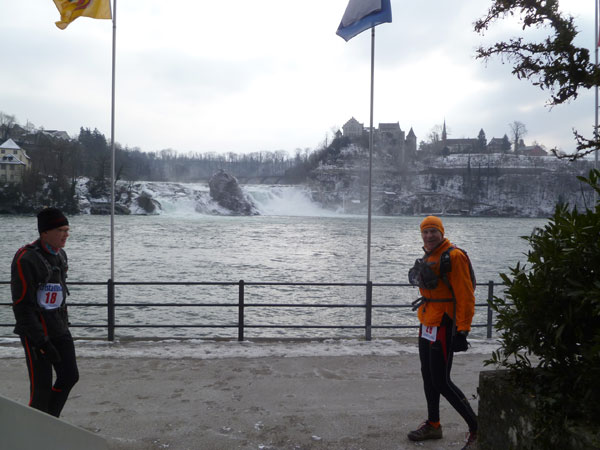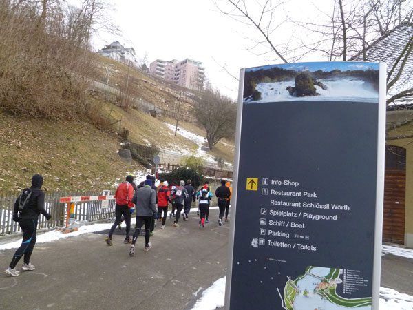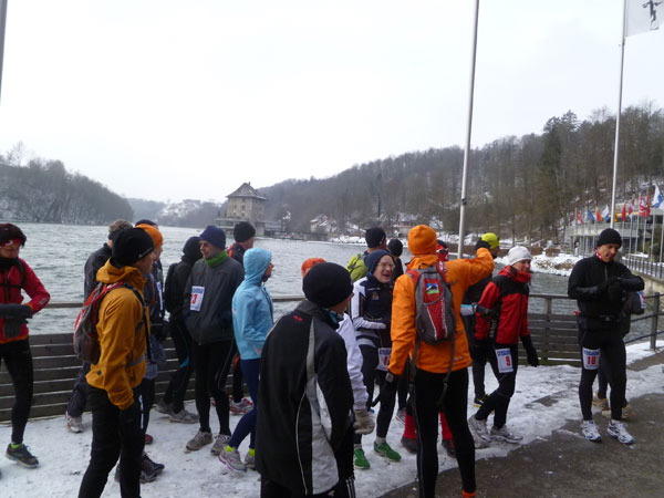 Organisiert wird der Rheinfall Marathon heuer zum zweiten Mal und zwar als Einladungslauf von Daniel Steiner, Stammlesern von marathon4you ja bestens bekannt. Teilnehmen kann man derzeit nur mit einer persönlichen Einladung. Bei der Erstauflage waren 18 Personen dabei, heuer sind schon 28 angemeldet. Einer fällt wegen Krankheit aus und Niels verpennt den Start. So bleiben 26 Laufwillige übrig.