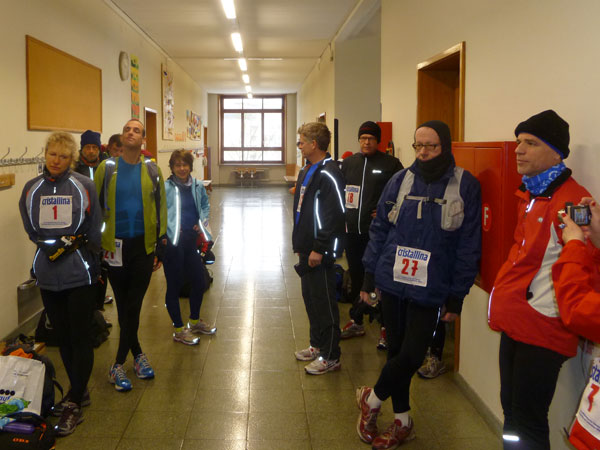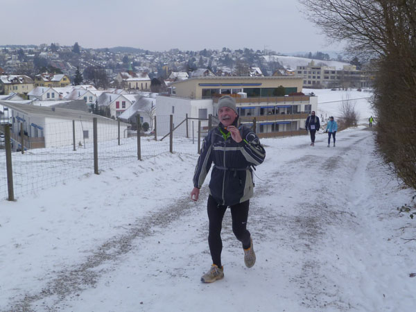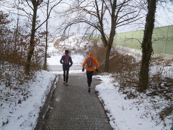 Ich vermute, ich bin so ziemlich der Letzte auf der Piste, genau weiß ich es aber nicht. Eberhard hat schon beim Start angekündigt, dass seine Finger bei den Temperaturen nicht warm werden und er daher früher aufhört. Könnte aber sein, dass Christoph noch hinter mir ist und mir den letzten Rang streitig macht. Er verläuft sich nämlich heute schon mal und ist bereits einmal von hinten aufgetaucht, obwohl er vor mir sein sollte.
