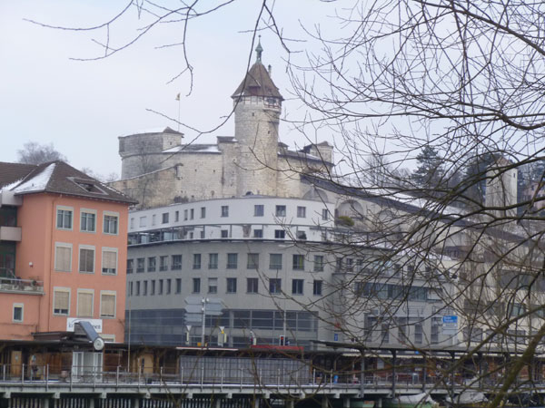 Gegenüberliegend ist das Stadtpanorama von Schaffhausen bewundern. Daniel betätigt sich als Fremdenführer und zeigt mir die alten Stadttürme und erzählt was sonst noch wissenswert ist. Wie z.B. von der Bombardierung Schaffhausens im Zweiten Weltkrieg. Am 1. April 1944 wurde die Stadt versehentlich das Ziel von Bombenangriffen mehrerer Geschwader der US-Air Force. Sie hatten eigentlich Ziele in Deutschland auf dem Plan. Die US-Streitkräfte entschuldigten die Bombenabwürfe später mit Navigationsfehlern. Einen der Bomberpiloten hat er persönlich kennen gelernt und... das erzähle ich jetzt nicht weiter. Ihr könnt ihn ja persönlich nächstes Jahr danach fragen.