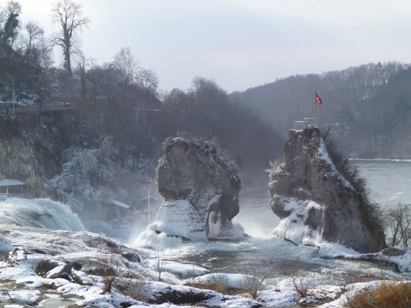 In Neuhausen am Rheinfall stürzt der Rhein auf einer Breite von etwa 150 Meter um 23 Meter in die Tiefe und bietet ein imposantes Naturschauspiel. Neben dem Dettifoss aus Island, der zwar doppelt so hoch, aber nur halb so wasserreich ist, ist der Rheinfall damit der größte Wasserfall Europas. Der einzige, der diese gewaltigen Wassermengen aufwärts bezwingen kann, ist der Aal. Der schlängelt sich seitwärts über die Felsen hoch.