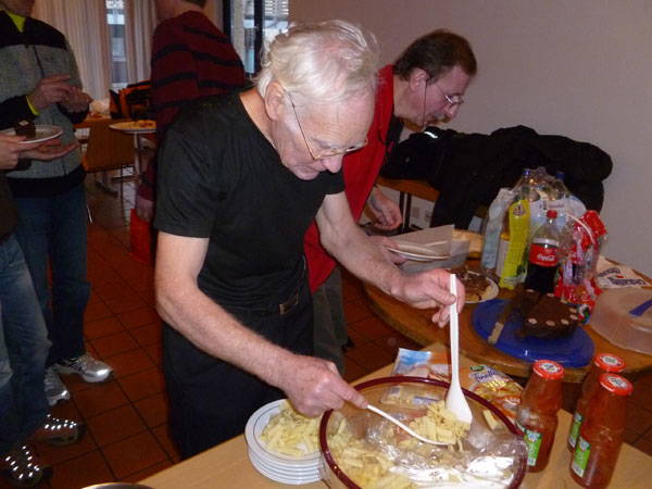 Nach getaner „Arbeit“ ist Treffpunkt bei Daniel. Er hat Nudeln gekocht und ein Kuchenbuffet steht auch bereit. Jeder bekommt noch eine Urkunde.