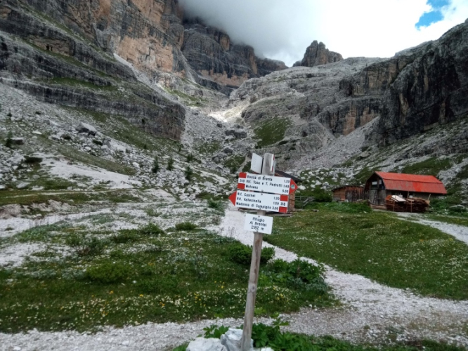 Einige highlights kommen noch: da wäre die Tuckett-Hütte mit ihrer einmalig schönen Lage. Oder das Vallesinella- Tal mit den Wasserfällen. Oderoderoder…