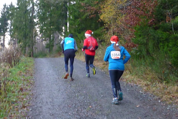 Es geht abwärts. Ich lasse es richtig laufen. Das Höllental hinunter fliege ich. Na ja, ich hab das Gefühl zu fliegen. Ich merke, abwärts bin ich stärker als aufwärts. Der Glühweinlauf zeigt mir gnadenlos auf, wo ich noch Trainingsaufgaben zu bewältigen habe.