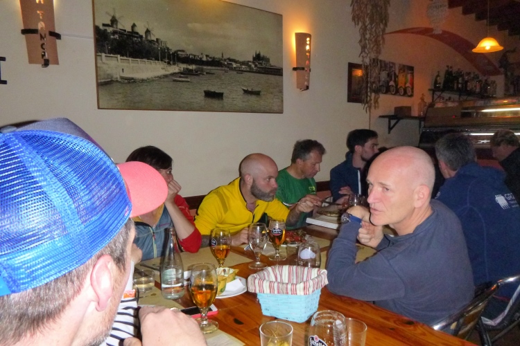 Ich erreiche das Hotel, unser Shuttle ist auch gerade eingetroffen, das Gepäck wird entladen und die Zimmer zugeteilt. Ein Bummel am Strand ist auch noch drin, die berühmte Straßenbahn von anno drölfzig fährt regelmäßig, die Schiffe dümpeln so vor sich hin. Nach und nach trudeln alle anderen ein und um 8 begeben wir uns zum Futtern. Paella gibt’s. Bis zum Abwinken. Und Cerveza grande…