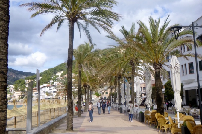 Wenn es zunehmend kultivierter wirkt, hat man bewohntes Gebiet erreicht. An einer schönen Finca mit Ausschank beginnt ein kurzes Straßenstück auf den Leuchtturm zu. Dies ist eine Variante des GR221, die Hauptstrecke würde nach Soller führen. Ganz besonders steinig kommen wir dem Leuchtturm immer näher. Überraschung: frisch gepresster Orangensaft kurz davor! Ich bin so platt, dass ich das Foto versäge. Aber köstlich. Und nun die Bucht mit dem Hafen, den Yachten, der Promenade. Erst Straße, dann Strand. Wie finisht man sowas?