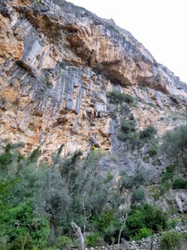 966 hm im Aufstieg auf so 7 km, Kopfsteinpflaster unter den Tretern. Bis zur Passhöhe ist der Weg bestens in Schuss. Der Blick zurück ist grandios. Schroffe Felswände, der Ort, das Meer…immer wieder queren wir kleine Brücken. Der Bach führt kristallklares Wasser. Nebenan werden die Oliven beschnitten – am Sonntag! – und gleich verbrannt. Der Holzbrand riecht richtig gut. Aber es bläst ein ordentlicher Wind, der immer kälter und stärker wird, je höher es geht. Warm anziehen! Ich verzichte und trabe über die Kuppe weg schnell in die Tiefe. Im Windschatten geht es gut, kurz darauf gibt’s Rückenwind. Dazu geht‘s bergab – eine sehr beliebte Kombination, muss ich sagen. Ruhig mehr davon! Ein breiter, fast flacher Weg leitet uns am Stausee Cuber entlang zum Shuttle. Eine tolle Etappe!