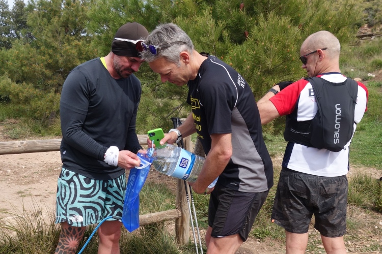 Einige Läufer sind schon im Refugi del Pontroma angekommen und nehmen erste Regenerationsmassnahmen in Form von diversen Getränken und Speisen vor bzw. zu sich. Das Gepäck liegt für alle Läufer bereit. Ich greife meinen Rucksack mit Wechselkleidung und ziehe mich um. Dabei wird die erste Getränkedose geleert.