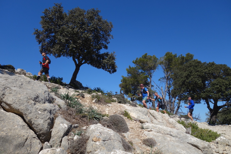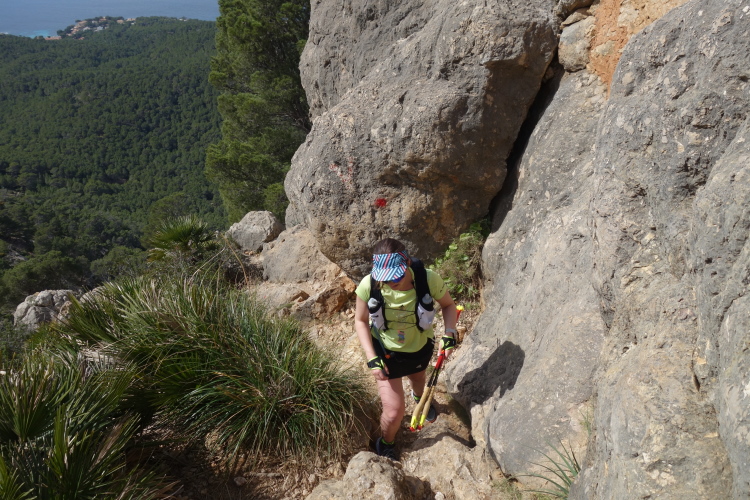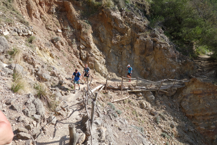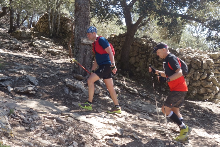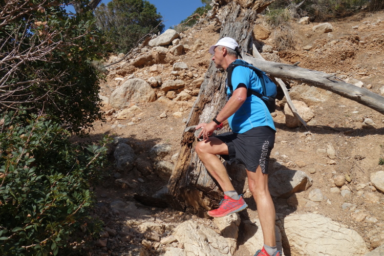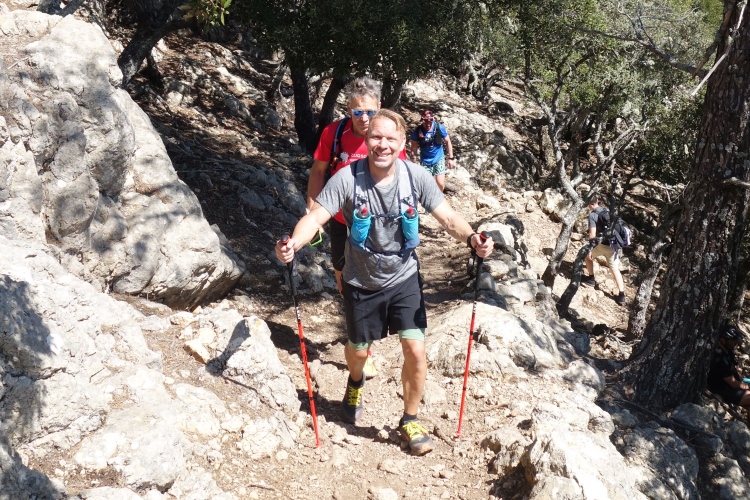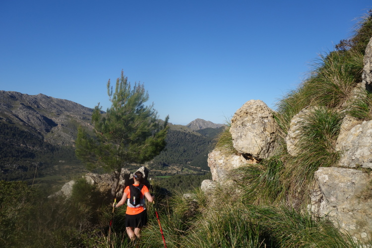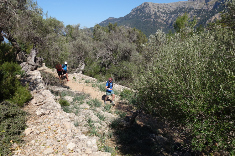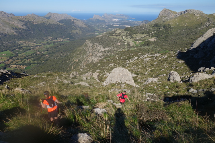 Michael weist kurz darauf auf einen Abzweig hin. Der Cami del Ninot führt direkt nach unten und bietet eine Abkürzung. Ich nehme das Angebot gerne an und Andrea begleitet mich. Michael läuft mit Kerstin und Markus auf dem Originaltrail weiter. Andrea und ich haben auch auf der Abkürzung ordentlich Arbeit vor uns. Aber irgendwann ist auch das geschafft und wir kommen am Ziel in Pollenca an.