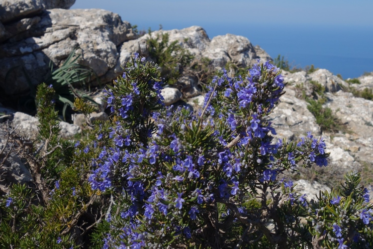 Wir können die freiwilligen Helfer heute nicht bei der Arbeit unterstützen. Über ein Viehgatter kommen wir auf eine breite Schotterpiste. Diese führt mächtig aufwärts. Ich komme ins Schwitzen. Nach wenigen hundert Metern laufen wir in einer Kehre geradeaus auf einen schönen schmalen Pfad, der uns Richtung Cap Fabioler bringt.