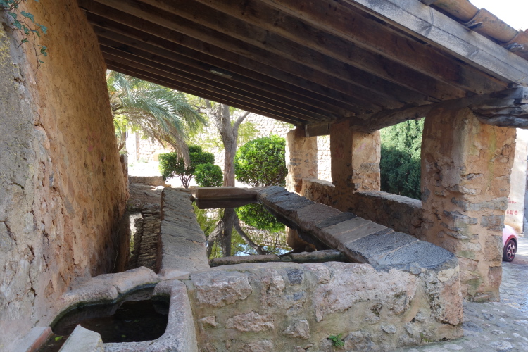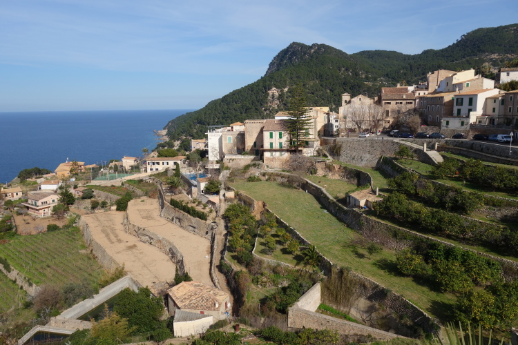 Der Weg zieht sich. Aber wir kommen abwärts. Die ersten Häuser des “Künstlerdorfes” Deià tauchen auf. Wir kommen etwas unterhalb des Ortszentrums an die Straße MA 10. In das Ortszentrum laufen wir nicht. Wir folgen der MA 10 wenige Meter abwärts. An einer Bushaltestelle warten wir auf den Tourbus. Es heißt Wasser nach zu fassen.