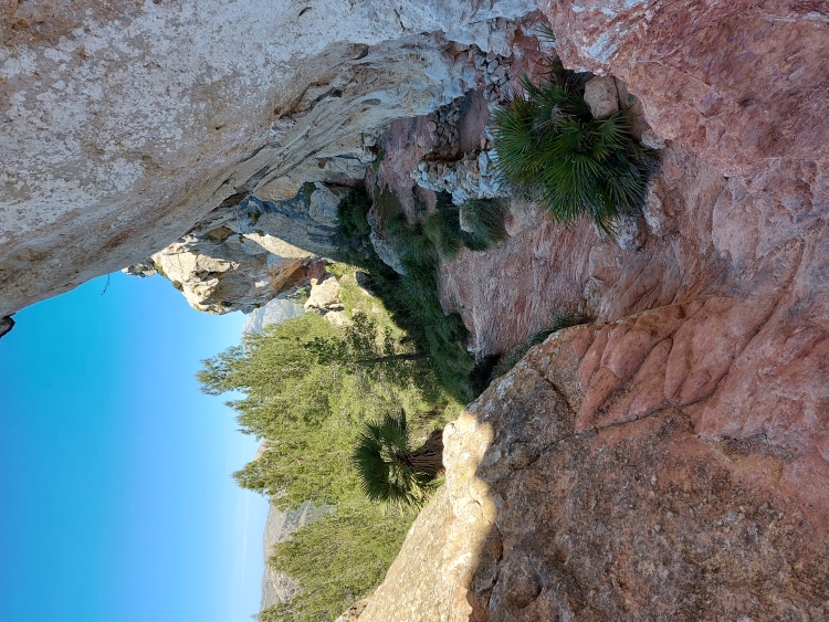 Wenn man denkt man sei oben kommt immer noch eine weitere Stufe die aufwärts zu bewältigen ist. Sogar eiserne Steighilfen sind am Fels und erleichtern den Aufstieg – zur nächsten Geländestufe. Wann endlich sind wir oben? Ich hechle den Dreien hinterher. Immer wieder stecke ich die Kamera in die Tasche um die Hände im Gelände frei zu haben. Dabei verliere ich Zeit. Aber ich kann dranbleiben.
