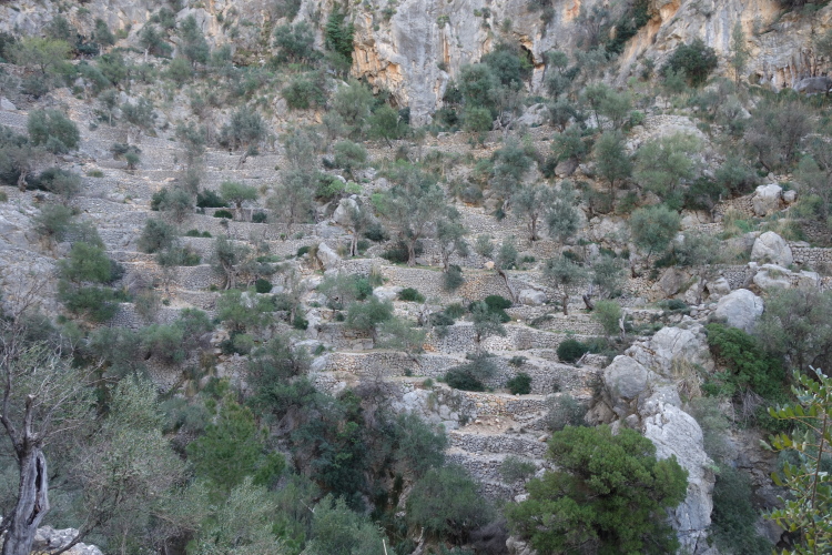 Nahezu überall sind wunderschön angelegte Terrassen zu sehen. Die in mühevoller Handarbeit errichteten Terrassen werden vielfach nicht mehr bewirtschaftet, einige sind bereits im Verfall begriffen. Oft liegen sie in landwirtschaftlichen Ungunsträumen. Dazu sind sie nicht einfach zu erreichen und in ihren Steillangen schwer zu bearbeiten.