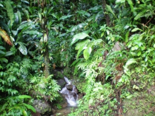 Anders als in unseren geographischen Breiten ist der Tag mit einer nur sehr kurzen Dämmerung angebrochen. Es ist wolkig, wie fast immer unmittelbar am Mont Pelee. Es fällt ein wenig Nieselregen, was der Haut gut tut und die Hitze abmildert.