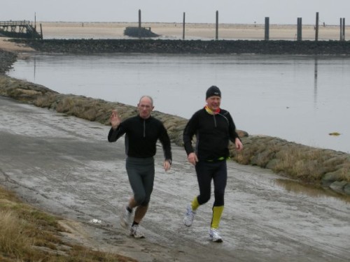 Der Himmel blieb zwar ganztags bedeckt, womit sich der in den Tagen zuvor noch in den Wettervorhersagen angekündigte Sonnenschein nicht einstellte. Die Laufbedingungen waren jedoch aus meiner Sicht ausgezeichnet. Bereits bei meiner Ankunft am Veranstaltungsort gegen 8.30 Uhr zeigte das Außenthermometer meines PKW +8,0° Celsius an. Und auch der Wind, der ja an der Nordseeküste eigentlich immer vorhanden ist, hielt sich weitgehend in Grenzen. Somit stand einem guten Gelingen auch wetterseitig nichts im Wege.