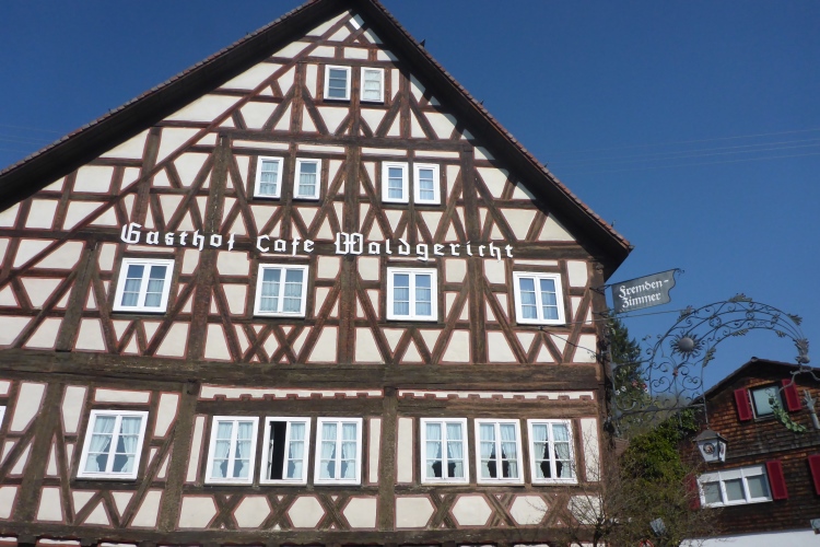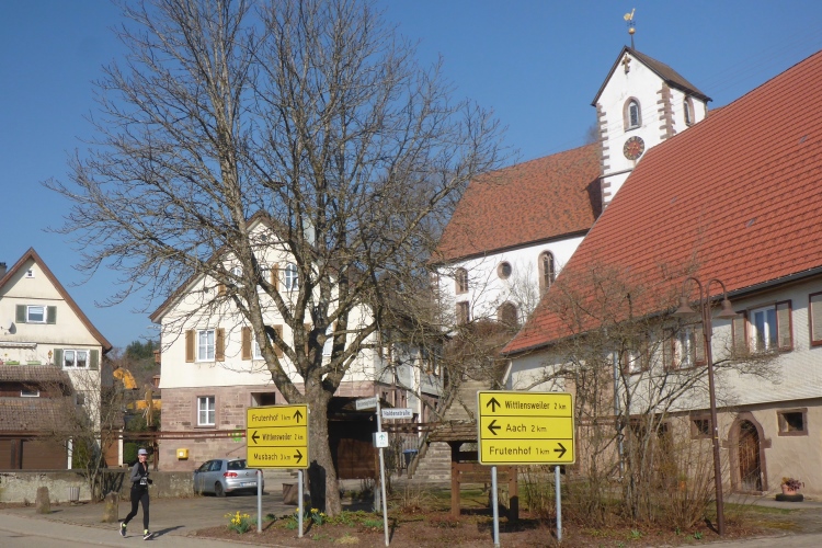 Im Aach komme ich wieder am schönen Fachwerkhaus des Gasthof Waldgericht vorbei. Nachdem ich bei der ersten Runde vor allem auf die Landschaft achtete, wende ich mich nun mehr den kleinen Details neben der Strecke zu. Ich lasse mir Zeit und gönne mir den Luxus, zwischendurch auch Blumen und Vögel zu fotografieren. Ich bin nicht der einzige, denn weitere Läufer schwärmen im Ziel davon, dass unterwegs viele Tiere und Pflanzen zu sehen sind.