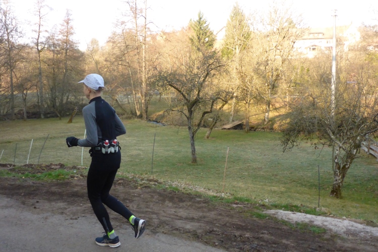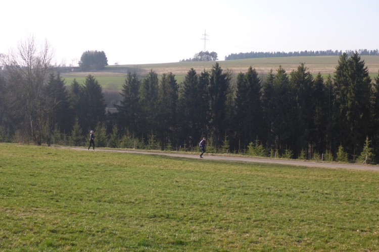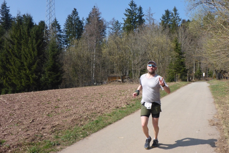 Dann erreiche auch ich wieder Start/Ziel in Grüntal, ziehe meine Jacke aus, trinke etwas, rede kurz mit Wolfgang Neuweiler, der im Gegensatz zu mir nur noch eine statt zwei Runden vor sich hat, und laufe weiter.