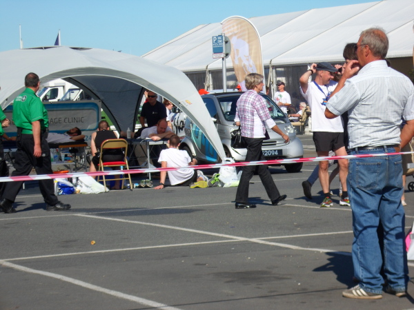 Dann tritt Peter Head ans Mikrofon mit einer schlechten Nachricht: Am Guernsey Airport ist nachmittags dichter Nebel aufgekommen, der ein Starten und Landen von Flugzeugen unmöglich machte. Zahlreiche angemeldete Läufer werden nicht teilnehmen können, da ihre Flüge von London, Southampton, Düsseldorf usw. umgeleitet wurden zu anderen Flughäfen. Die Maschine von Düsseldorf war bereits im Landeanflug, als sie wieder durchstarten und nach Düsseldorf zurückkehren musste. Ein herber Schlag für die verhinderten Läufer und den Veranstalter. Sonntags werden statt der angemeldeten 230 Läufer nur 127 über die Zielmatten laufen, darunter neben mir noch 2 weitere Deutsche. Wie ich erfahren habe, sollen die verhinderten Läufer im kommenden Jahr kostenlos am Guernsey-Marathon teilnehmen dürfen.