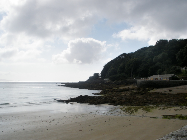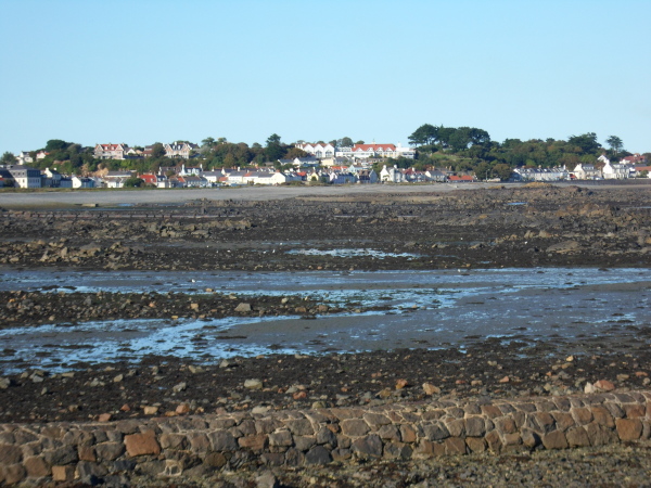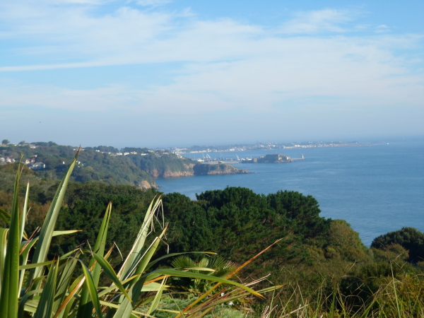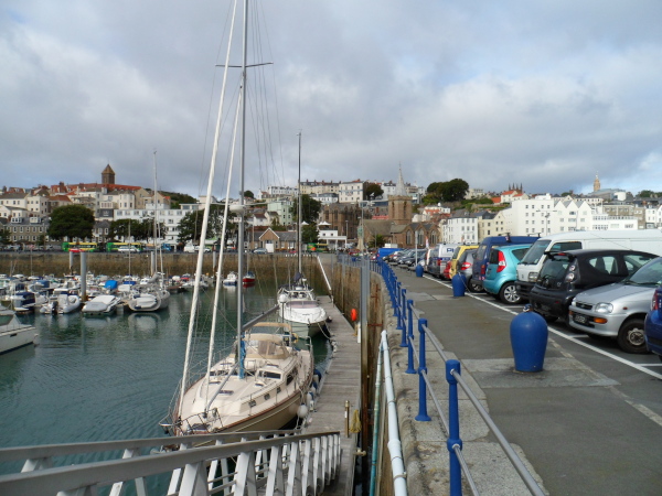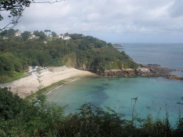 500m nach The Bridge bekomme ich einen ersten Blick auf Castle Cornet, die Festungsanlage im Hafen von St. Peter Port, nicht weit von meinem Ziel Albert Pier. Es sieht so nah aus, aber es sind noch 3 Meilen, denn die vor mir liegende Belle Grave Bay macht einen riesigen Bogen und der Weg um diesen Bogen zieht sich wie Kaugummi. Aber wenigstens geht es jetzt ganz eben bis zum Ziel.