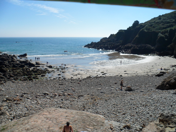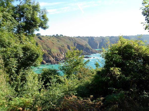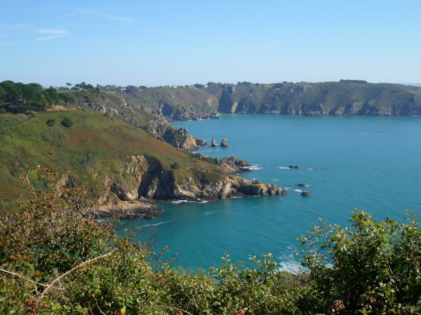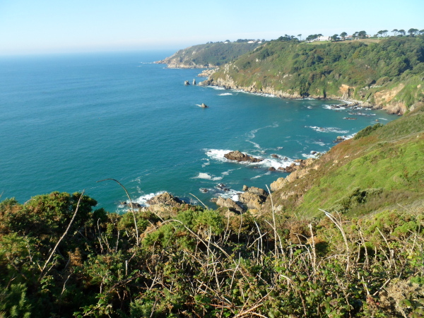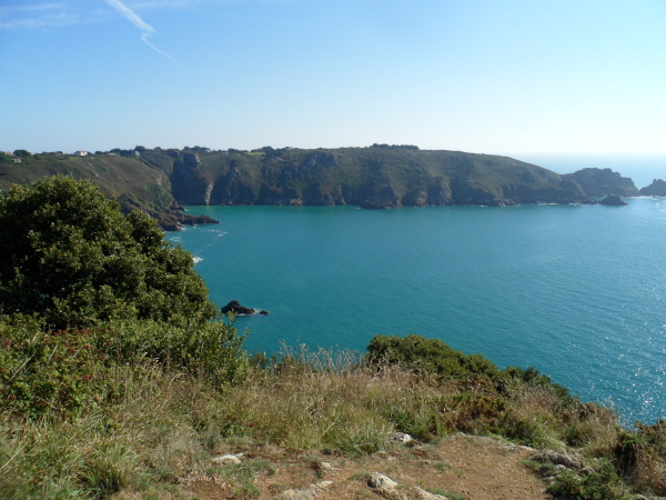 Wir folgen der Küstenstraße entlang der Perelle Bay zur Vozon Bay. Hier haben wir die Hälfte geschafft: 13,1 Meilen.