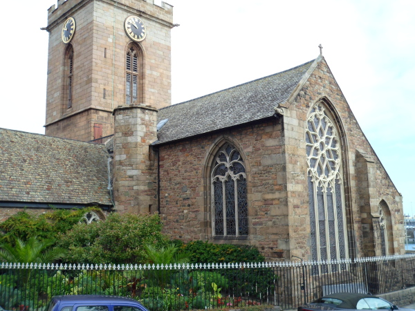 Zunächst geht es flache 200m am Bus Terminal entlang, dann an der Town Church links ab in die ansteigende Fountain Street in Richtung der Parish St. Martin. In der Stadt sind die Straßen für den Autoverkehr gesperrt. Danach sind wir gehalten, auf der linken Straßenseite zu laufen. Da auch die Auto auf der englischen Insel links fahren, also von hinten kommen, sollte man zur eigenen Sicherheit während des Laufes keine laute Musik vom iPod hören.