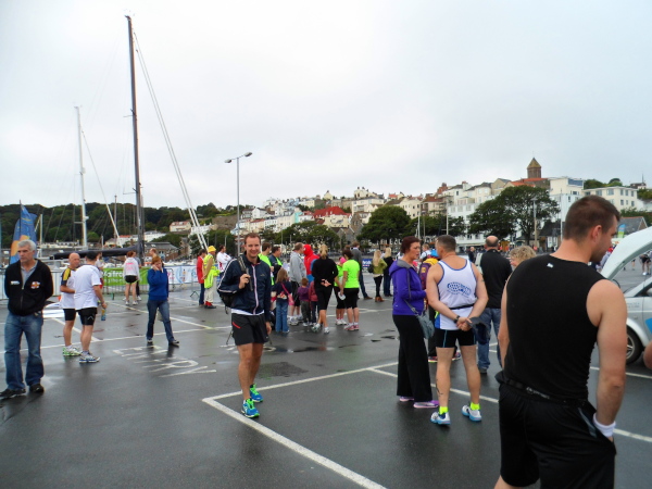 Samstag. Heute ist Anmeldung im Marathon-Village auf dem Albert Pier. Alles ist leicht zu finden. Es herrscht eine ruhige, freundliche Atmosphäre. Die Registration der Läufer hat Peter Head übernommen, der auch den Marathon auf Guernsey organisiert. Von ihm erfahre ich, dass 230 Läufer aus 18 Nationen angemeldet sind (z. Vgl.: 2012 waren es noch 139 Finisher von 10 Nationen). Dabei sind Läufer aus Kenia, USA, Australien, Neuseeland, Hongkong, Singapur….., Läufer von allen 5 Kontinenten. Eine solche Internationalität bei einem vergleichsweise kleinen Marathon ist ungewöhnlich. Ein Marathon, der diese Anziehung auf Läufer aus aller Welt ausübt, muss etwas Besonderes sein.