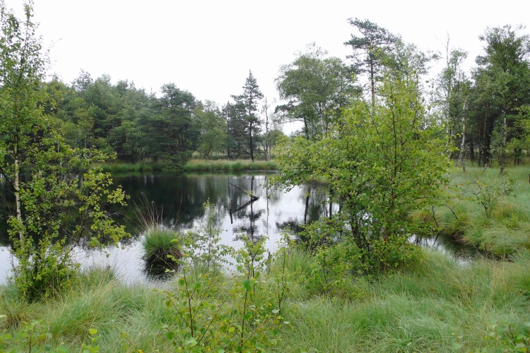 Sporthalle Schneverdingen, am Rand des riesigen Naturschutzgebietes. Aber auch irgendwie mittendrin. Gerade eben gestartet (um 7) sind wir rasch in der schönsten Heide. Und gleich auch im Moor. 15 traben ab. Nach der Hitze der letzten Woche ist Nieselregen was richtig Schönes. Zu wenig zum Ärgern, aber zu viel ohne Regenschutz. Jeder findet so sein outfit.