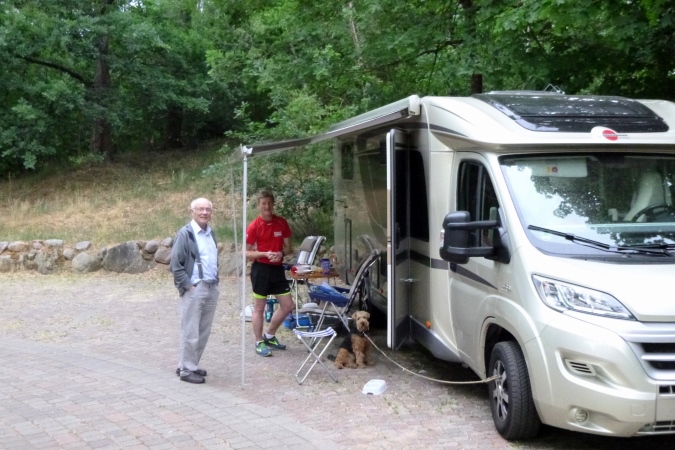 Da bin ich nun das Letzte. Nr.1, haha! Noch 21 km to go und es ist gleich 5. Ich habe zwar fast 2 l Wasser im Handumdrehen getrunken, aber es reicht nicht mehr. Und 4 Stunden bis zum Ziel möchte ich niemand zumuten, also schließen wir den VP und begeben uns mit dem Auto zum Ziel. Dort wird es nochmal so richtig schön. Ein Kommen und Gehen, Klönen, Planen.
