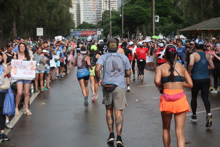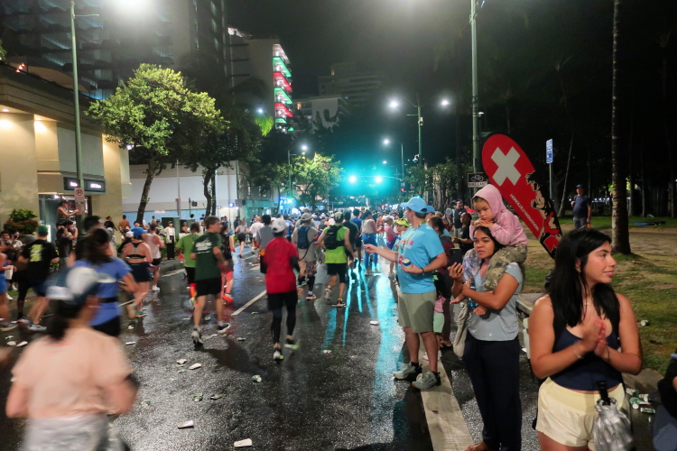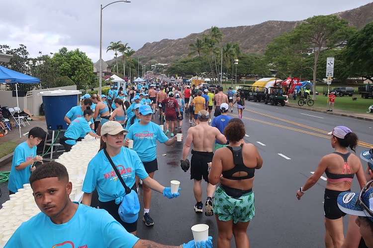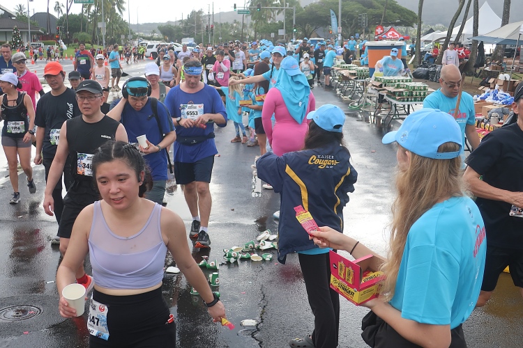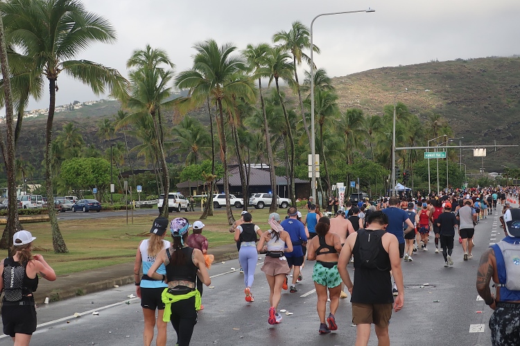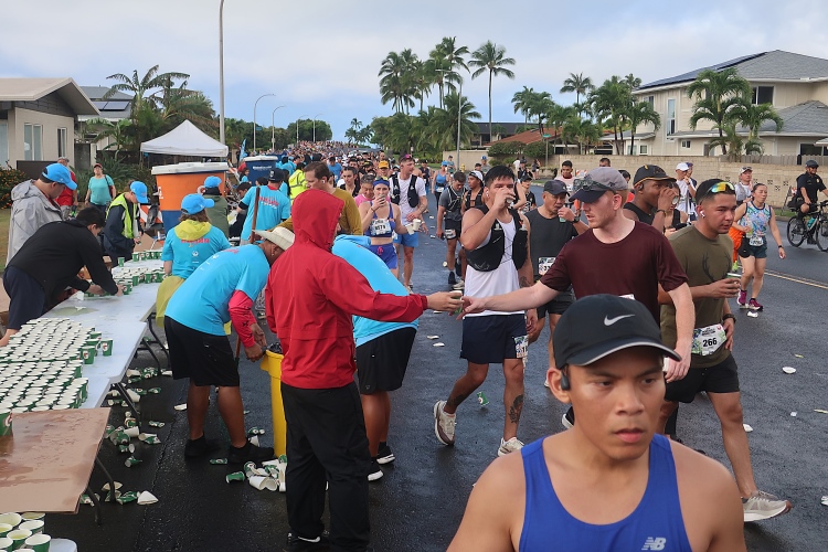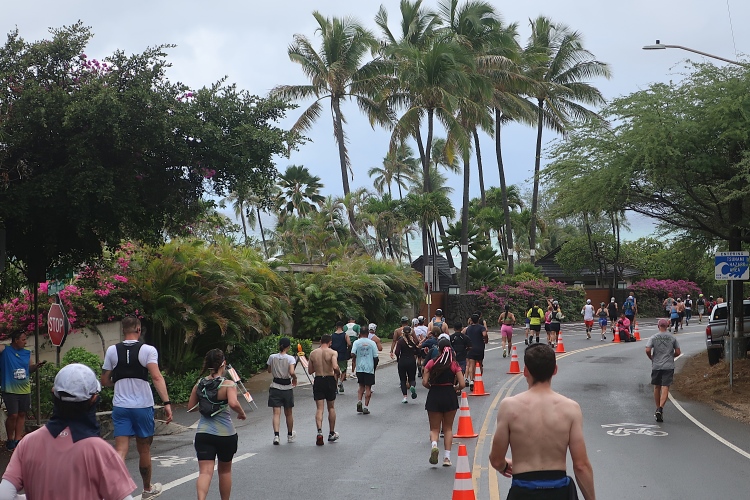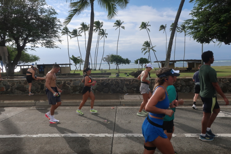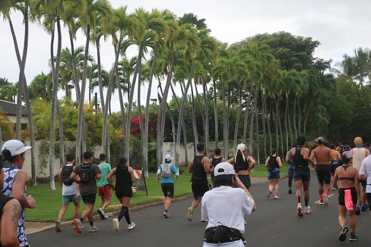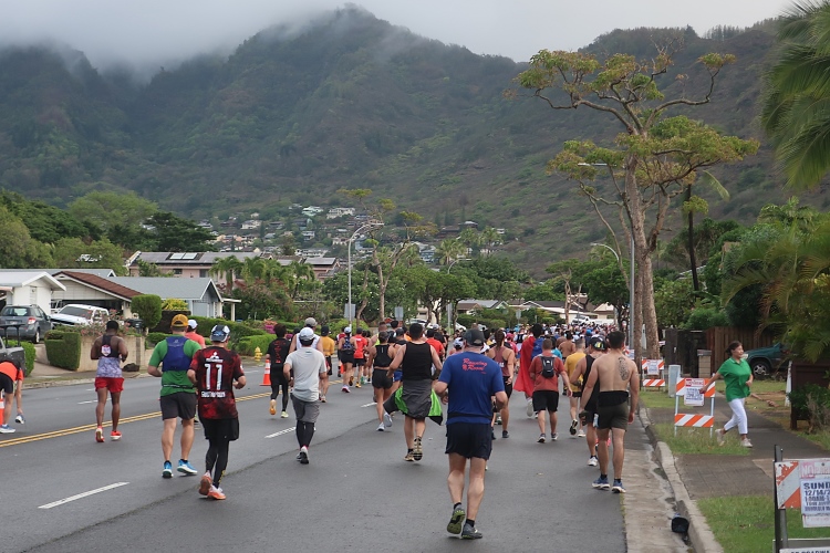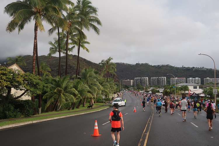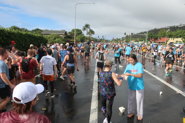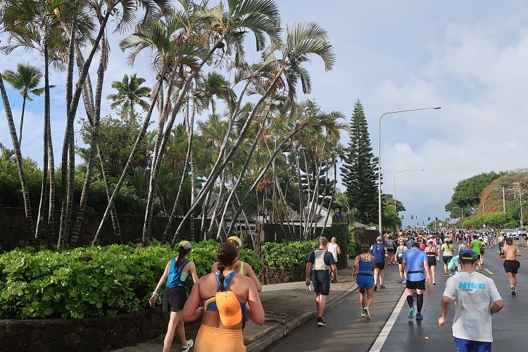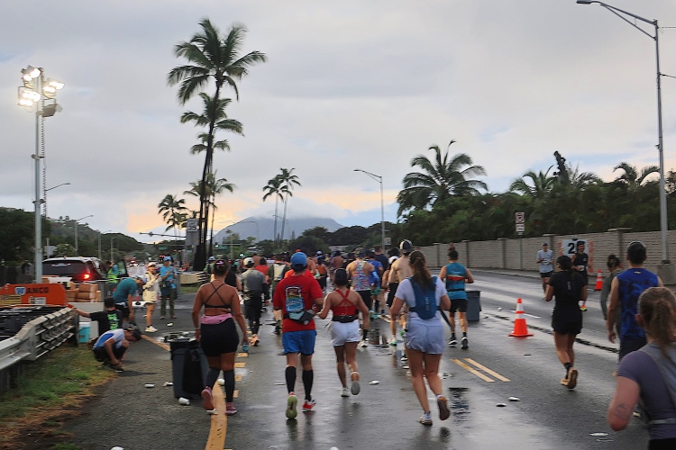 Die Schleife durch Hawaii Kai ist aber auch aus anderen Gründen besonders motivierend. Denn die Bewohner stehen hier zuhauf an der Strecke, feiern das Laufevent als Party und verwöhnen die Läufer mit allerlei süßen Leckereien - eine sehr willkommene Abwechslung in der sonst so diätetischen Läuferversorgung. Selbst Kältesprays für die überreizte Beinmuskulatur werden bereitgehalten.